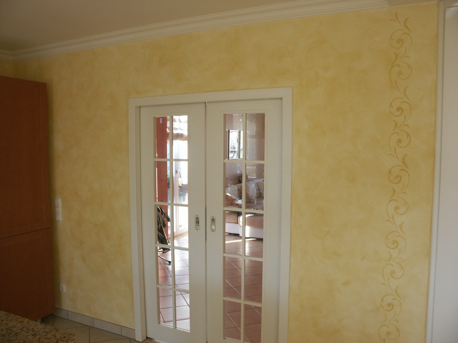 Diese alt-italienische Kalkpresstechnik läßt Wände und Decken neu aufleben. Durch das Aufspachteln einer speziell hergestellten Spachtelmasse aus Kalk- bzw. Marmormehlen entsteht eine besonders effektvolle Oberfläche. Je nach Lichteinfall und Betrachtungswinkel erhält die polierte Oberfläche eine Tiefenwirkung, die als vereinzelte Dekoration oder vollflächige Gestaltung in jedem Raum gut ankommt. Stucco Veneziano ist eine sehr individuelle und ungewöhnliche Handarbeit.